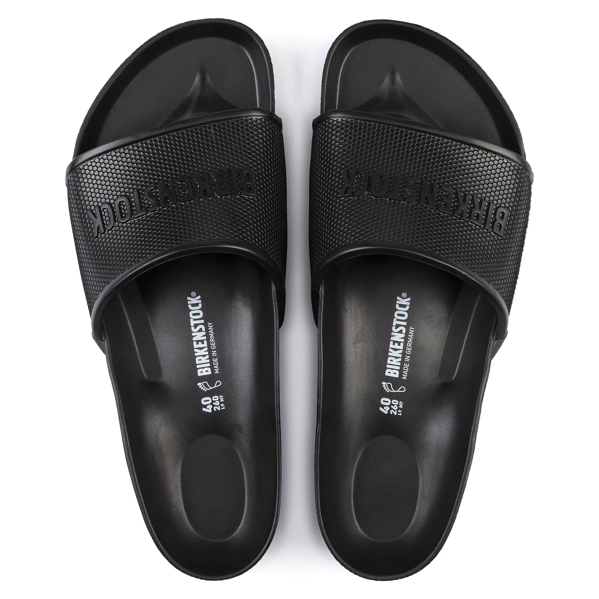 The BIRKENSTOCK Barbados is a sporty mule with a hexagon pattern and logo lettering. It's perfect for anyone who is looking in particular for function and comfort. Modeled on the cork sandal, this sandal is made from especially light and flexible EVA. This high-quality, odor-neutral synthetic material which has been tested for harmful substances is shock-absorbent, waterproof, and skin-friendly. It's therefore perfect for wearing at the beach, in the garden, or in wellness and spa areas.